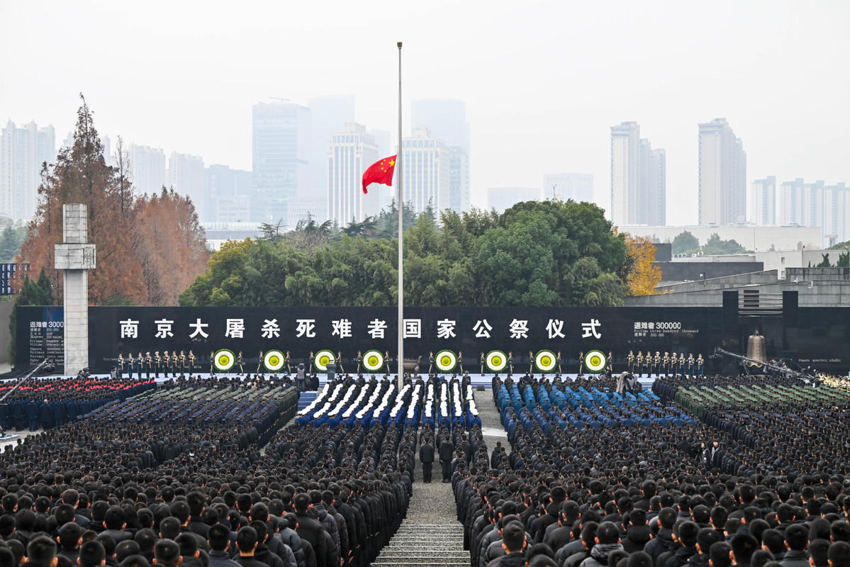 A national memorial ceremony for the Nanjing Massacre victims is held at the Memorial Hall of the Victims in Nanjing Massacre by Japanese Invaders in Nanjing, capital of east China's Jiangsu province, Dec 13, 2025. The 12th national memorial day was observed in Nanjing on Saturday to honor about 300,000 victims killed by Japanese troops during the Nanjing Massacre, in a year that marks the 80th anniversary of the end of World War II (WWII). [Photo/Xinhua]
