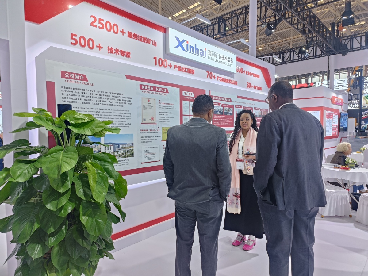 Foreign experts learn about a Chinese company during the 2025 China Mining Conference and Exhibition in Tianjin. [Photo by Yan Dongjie/chinadaily.com.cn]