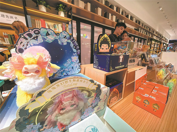 The 1,300-square-meter National Library Cultural Center in Beijing creates an immersive reading space where visitors can also purchase themed souvenirs. [Photo by Yan Xiang/For China Daily]