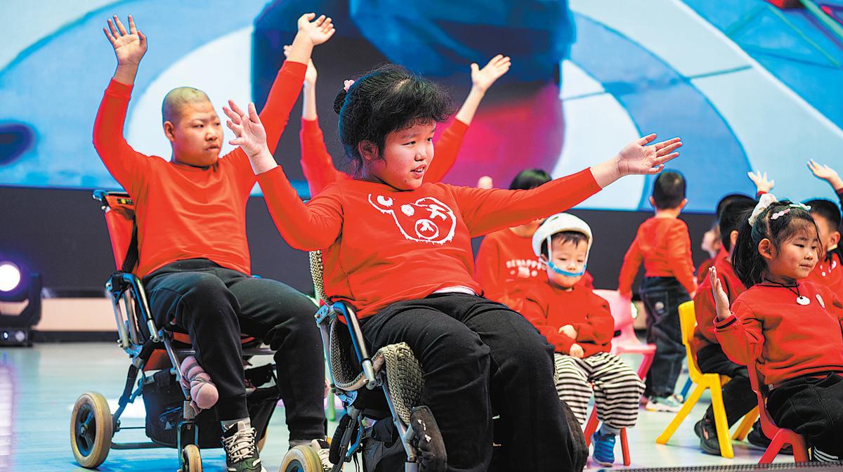 Students from the Tianjin Jinnan Boneng Rehabilitation Medical Center stage a performance during an event in Tianjin last month. [Photo provided to China Daily]