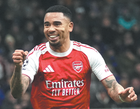Gabriel Jesus pushed Arsenal into the last 16 of the Champions League with a double in Tuesday's 3-1 win at Inter Milan which made the Gunners mathematically sure of a top-eight finish.