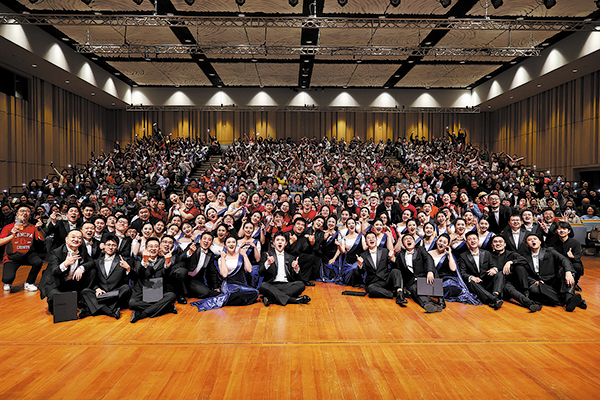Singers of the China NCPA Chorus pose with the audience after the 16th-anniversary concert in Beijing.[Photo provided to China Daily]