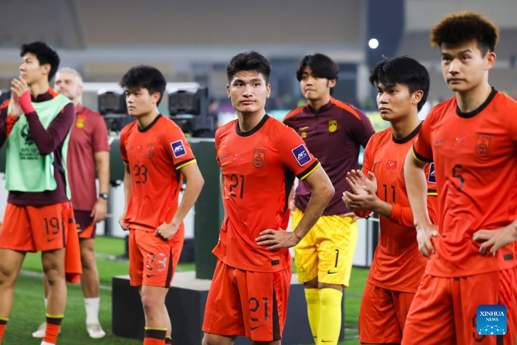 Players of China react after the 2026 AFC U23 Asian Cup final match between China and Japan in Jeddah, Saudi Arabia, Jan 24, 2026. [Photo/Xinhua]