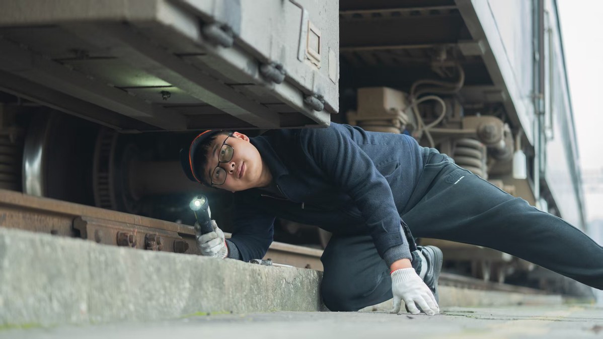 A maintenance worker checks a train in Chongqing on Jan 29, 2026. [Photo by Su Zhigang/For chinadaily.com.cn]