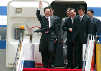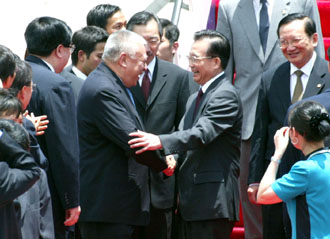 | Premier Wen Jiabao waves to crowds upon