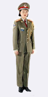 The People's Liberation Army (PLA) began to develop its new generation of service uniforms at the beginning of 1993. The new uniforms were presented to the Central Military Commission (CMC) for approval in 1995. The CMC held a meeting on April 10, 1995 to examine the new uniforms. By the approval of Chairman Jiang Zemin, who examined the new uniforms personally, the new generation of uniforms were first tried on by the PLA Garrison stationed in the Hong Kong Special Administrative Region on May 1, 1997 and were introduced to the three services in the spring of 2000. The new generation of uniforms includes nine items, namely, military dress uniform, spring/autumn military service uniform, summer military service uniform, sweaters, battle dress uniform, physical training dress , caps and decorations, shoes/boots, and bullet-proof vest. Military dress uniform 1. Style: Open-necked coat with picked lapel and square laps. Two lower insert pockets with flap. Toothed-edges (distinguishing type of service) at collar edge, sleeve cuffs and out-seams on trousers. Western-style trousers in dark greenish brown (Army), gray (Navy) or deep sky-blue (Air Force.) 2. Material: Thin whipcord 3. Decorations: Big cap insignia, hard epaulets, collar insignias, tie, tie bar, service mark tag, identity tag, aiguillette. 4. Cap: Peak hat. 5. Shoes: Leather.