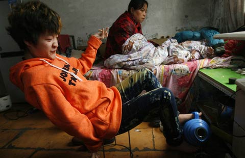 Zhao Na, 26, who lives in Changchun, Jilin province, suffers from cerebral palsy since early childhood and relies on her feet to accomplish everyday tasks.